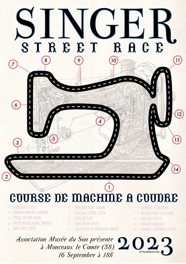 The association intervened in eighteen villages. Social centers visited the museum and took part in workshops. Collaboration with Metalovoice. Participation in various local events: 'Les Petites Rêveries' festival, 'Camion d'Alimentation Générale Culturelle' and 'La Comice Agricole'. And almost every year we're having our 'Singer Street Race'!